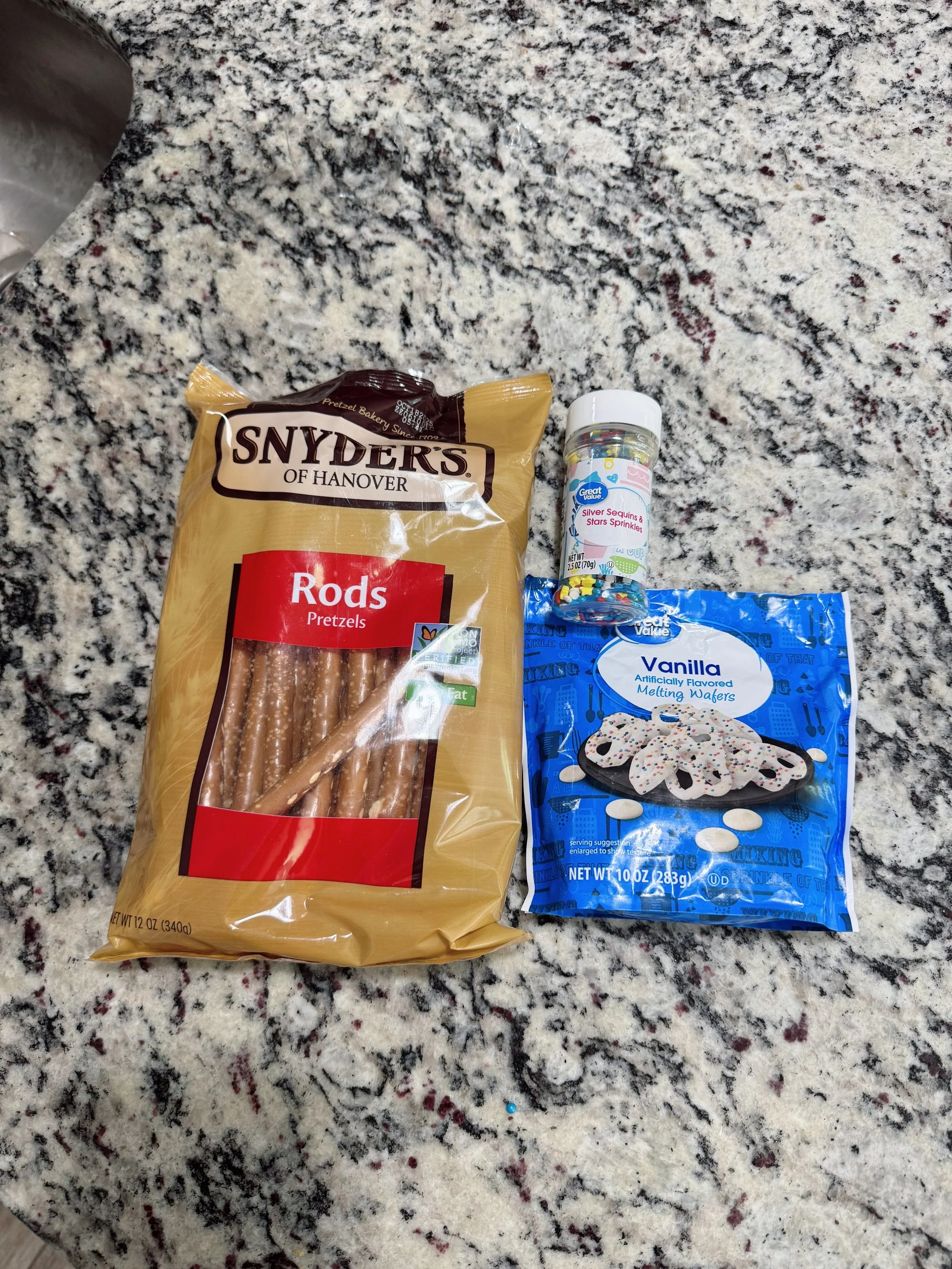 Ingredients you’ll need: pretzel rods (the long, sturdy kind), white chocolate melting wafers or almond bark, red, white, and blue sprinkles or sanding sugar or icing, Optional: star-shaped sprinkles or edible glitter, parchment paper or a cooling rack for drying.