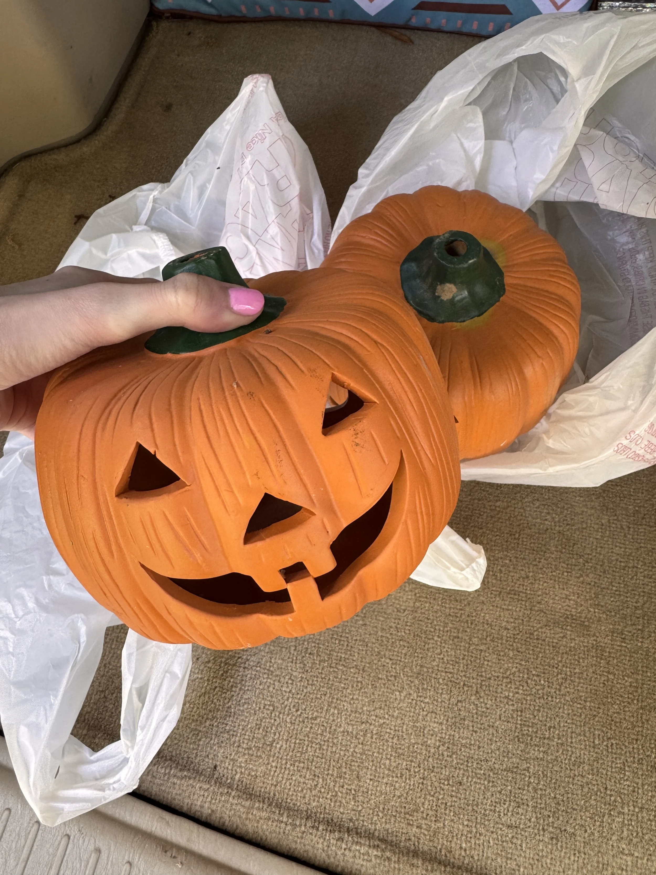 Here they are! I have a ceramic pumpkin collection I display on my porch each year, and I’m always looking for more Jack-O-Lanterns to add! I was able to purchase these for $0.50 each! A great way to spend $1 if you ask me :)