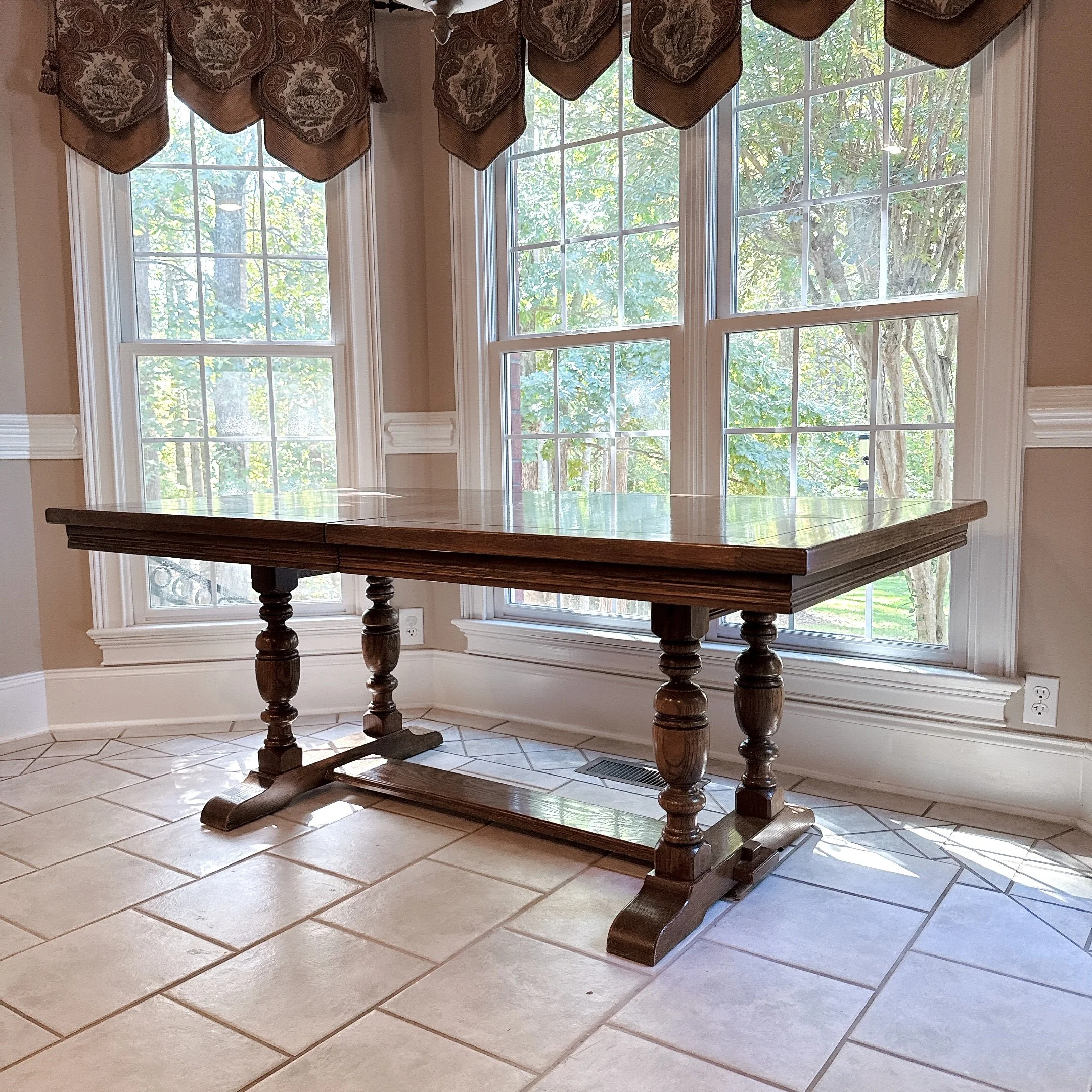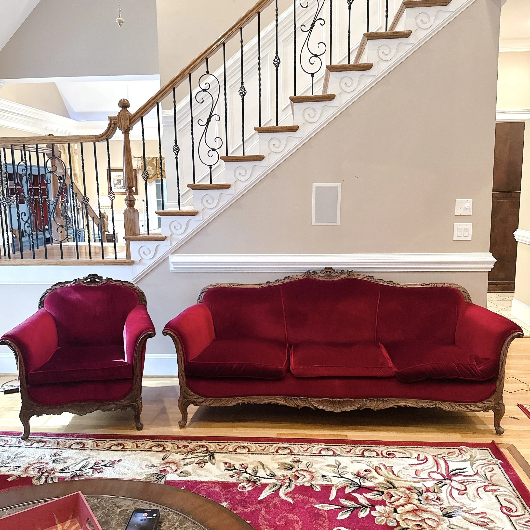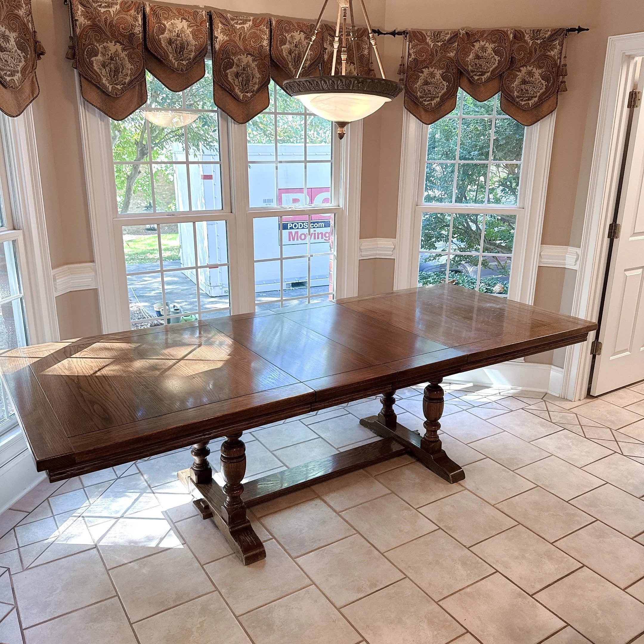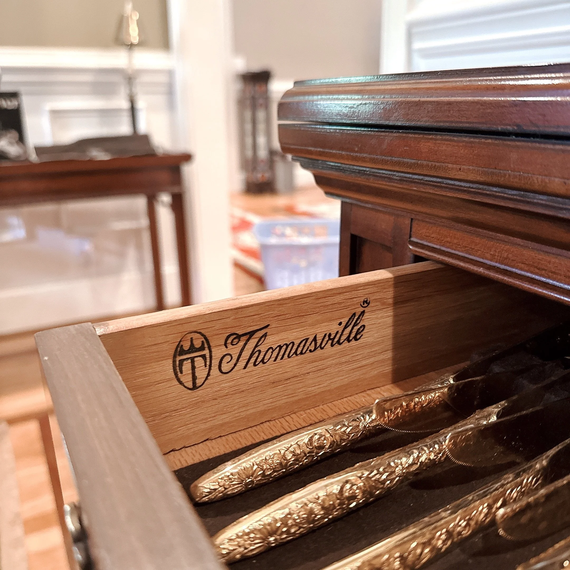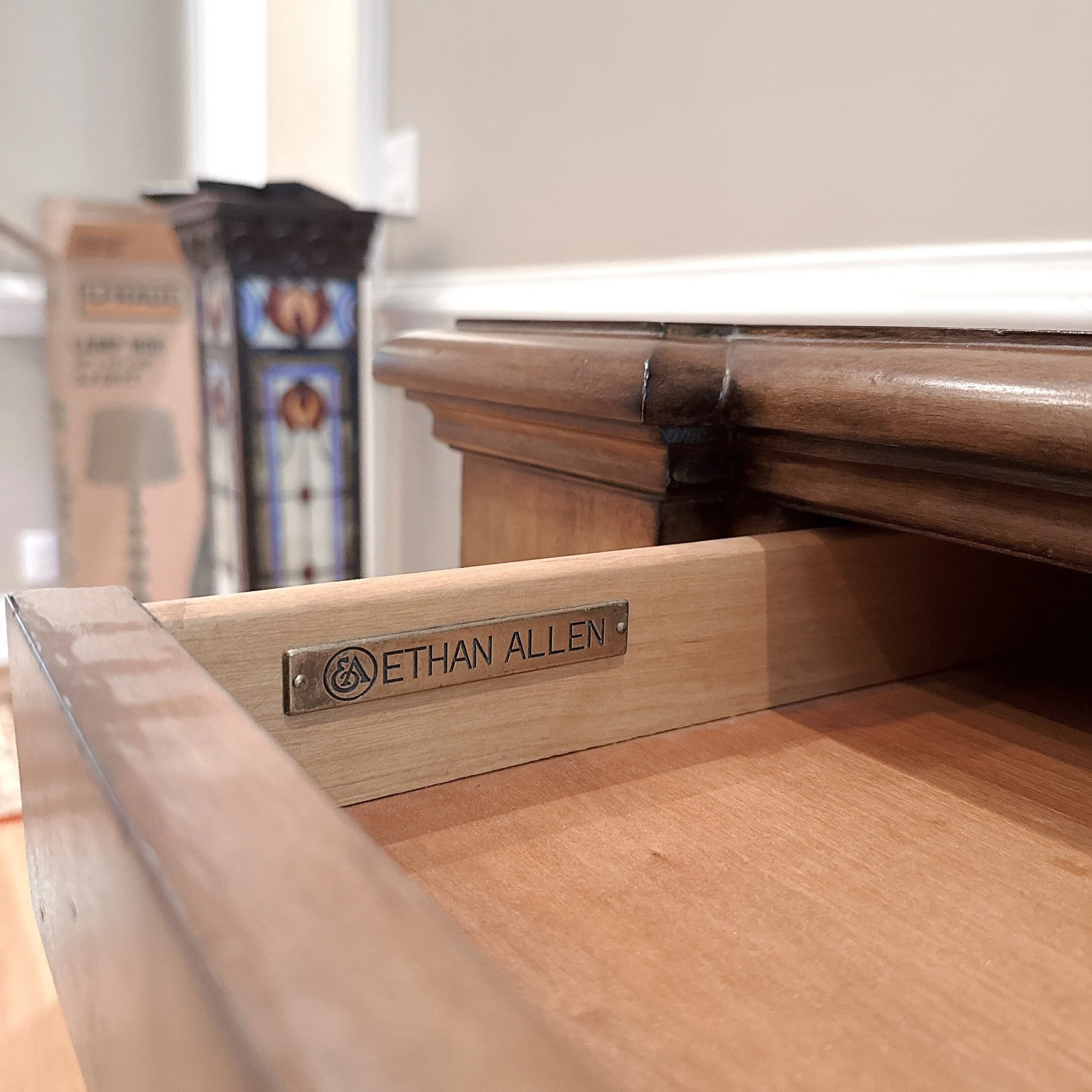 Categories: All Belmont Charlotte Early Access Event Legacy All / Belmont ETHAN ALLEN ROYAL CHARTER ANTIQUE OAK JACOBEAN STYLE EXTENDABLE DINING TRESTLE TABLE - TWO LEAVES $400.00 THOMASVILLE GEORGIAN STYLE CHERRY FLIP-TOP SERVER - DECORATIVE BRASS HARDWARE - CARVED DESIGNS $300.00 SET OF 6 VTG ETHAN ALLEN ROYAL CHARTER SOLID OAK BOWBACK WINDSOR DINING CHAIRS - TURNED LEGS $600.00 THOMASVILLE TRADITIONAL ROLLED-ARM BURGUNDY LEATHER SOFA - NAILHEAD TRIM - ROUND WOODEN FEET $400.00 TRADITIONAL MODERN ECLECTIC THREE-PIECE PAINTED WOODEN BOOKCASE - OPEN SHELVING - DECORATIVE TRIM $230.00 ETHAN ALLEN NEOCLASSICAL WALNUT INLAID MARQUETRY SIDEBOARD - BAR CABINET - BUFFET - CONSOLE $900.00 VTG DEEP RED VELVET UPHOLSTERED CAMELBACK SOFA - FRENCH PROVINCIAL ARMCHAIR SET - CARVED WOOD FRAME $270.00 VTG CAMELBACK CHIPPENDALE-STYLE SOFA - WINGBACK CHAIR SET - PINK & FLORAL CREWEL-STYLE UPHOLSTERY $100.00